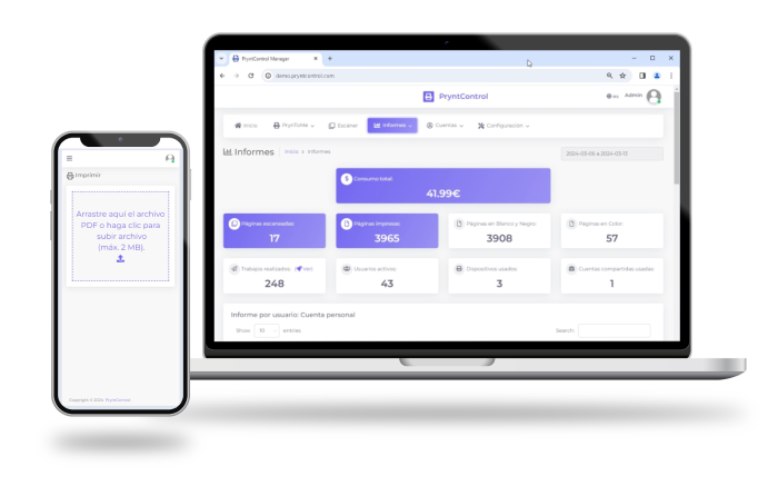 Todo desde su web personalizada PryntControl, una plataforma centralizada, accesible e intuitiva para administradores y responsables TIC.